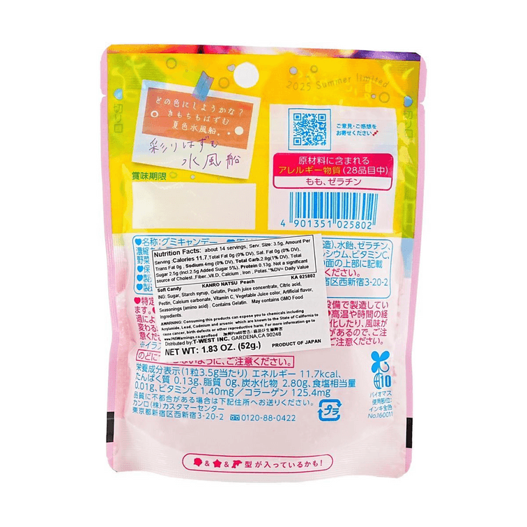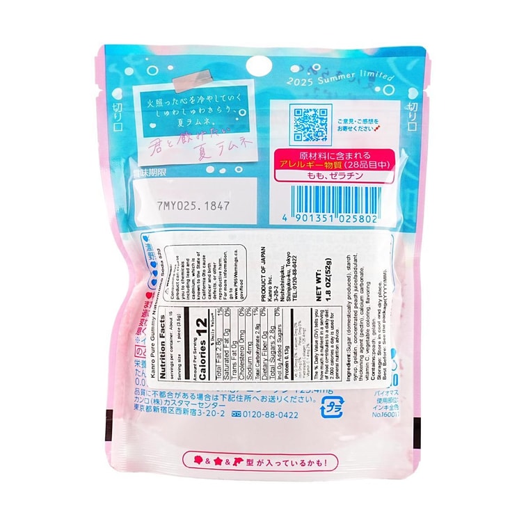 カンロ ピュアグミ サマーピーチソーダ 1.83オンス【ジャパントレンド】