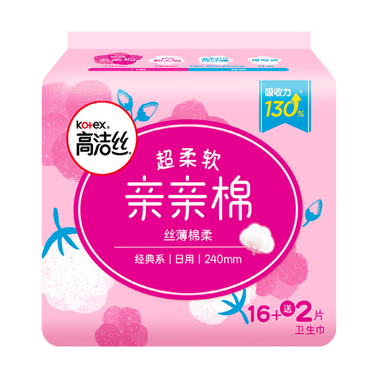 スーパーソフトフェミニン生理パッド ウィング付き、サイズ 2、18 個