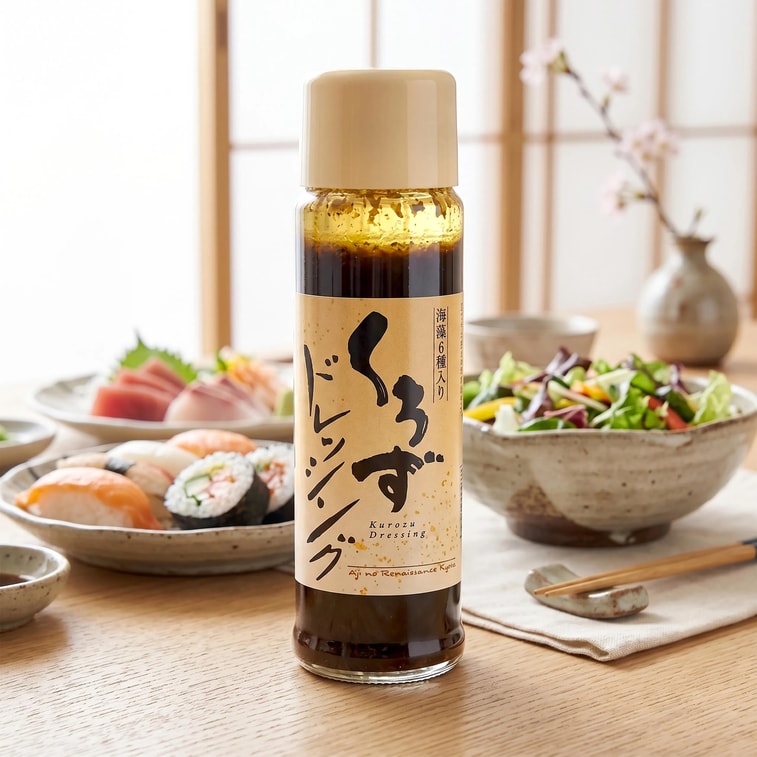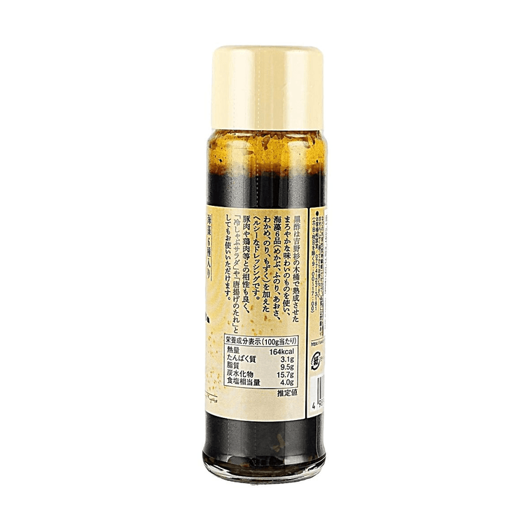 ["吉野杉樽で長期間熟成させたバルサミコ酢を使用したこのソースは、濃厚で滑らか、かつ辛味のない風味が特徴で、奥深く重層的な味わいを生み出します。アオサ、アオサ、昆布、ワカメ、ノリ、褐藻類など6種類の栄養豊富な海藻を特別に配合し、甘みのある魚介の風味を添えながら、より健康的でバランスの取れた食生活をサポートします。熟成バルサミコ酢の豊かな香りと海藻のフレッシュさが融合し、余計な味付けのない滑らかで自然な味わいを実現。健康的な食生活を求める方に","欠かせない調味料です。サラダはもちろん、豚肉や鶏肉とも相性抜群で、冷菜、鍋料理、唐揚げのつけだれなど、様々な料理で脂っこさを効果的に落とし、食欲をそそります。"]["Aged in yoshino cedar barrels for a mellow and smooth deep flavor profile","Infused with six nutrient-rich seaweeds for fresh and savory ocean umami","Natural blend of aged black vinegar and seaweed for health-conscious seasoning","Versatile dressing for salads and meats that effectively cuts through grease"]