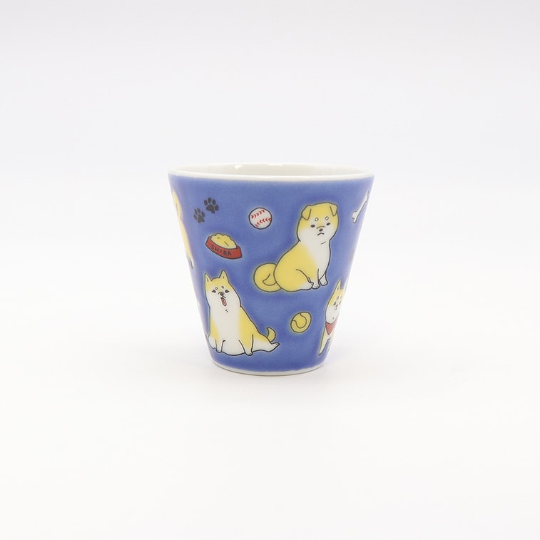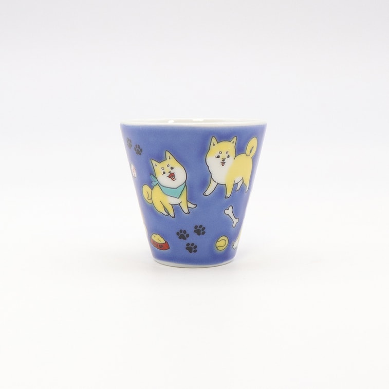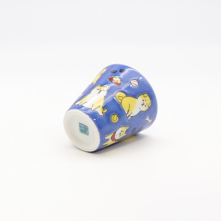 九谷焼 手作りカップ (犬柄 2.16インチ x 2.08インチ)
