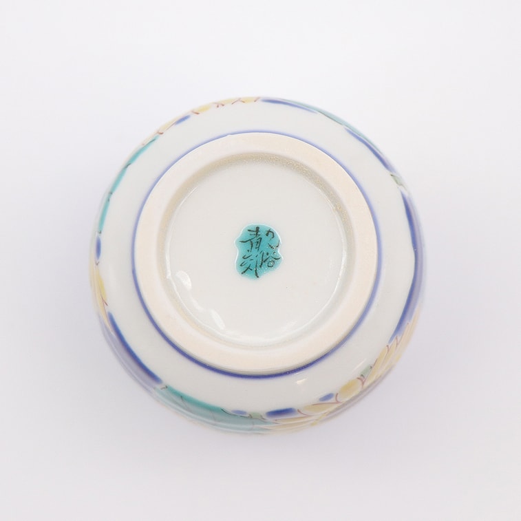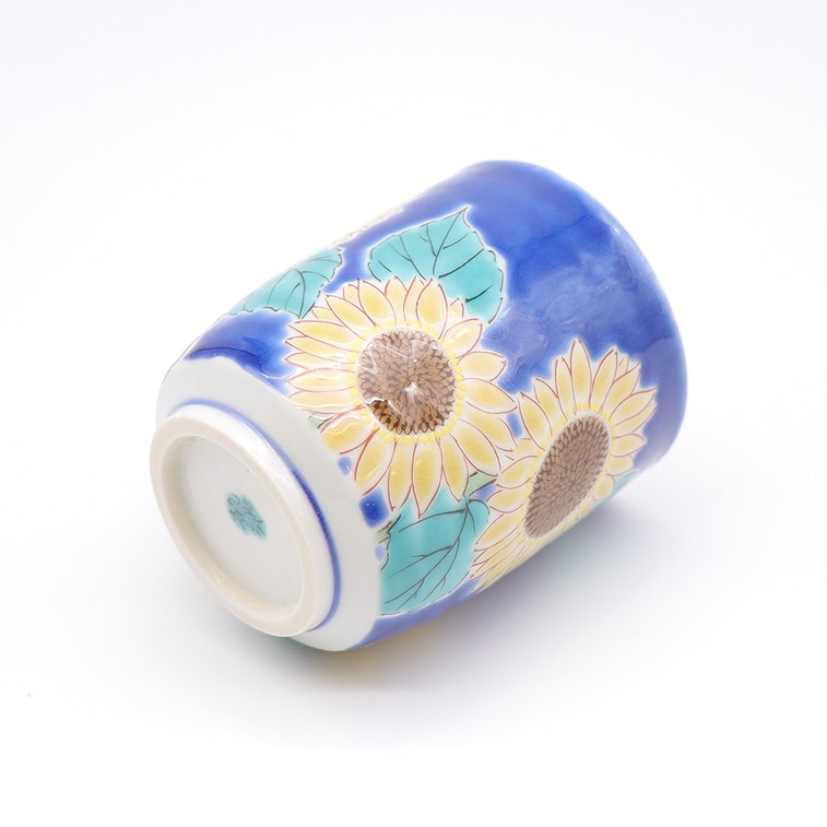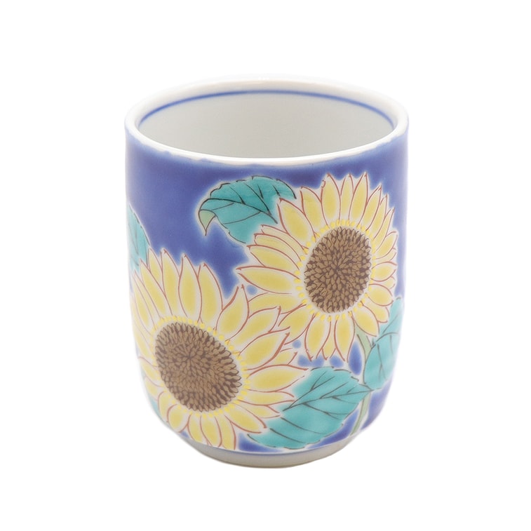 九谷焼 手作りカップ (ひまわり 2.7x2.7インチ)