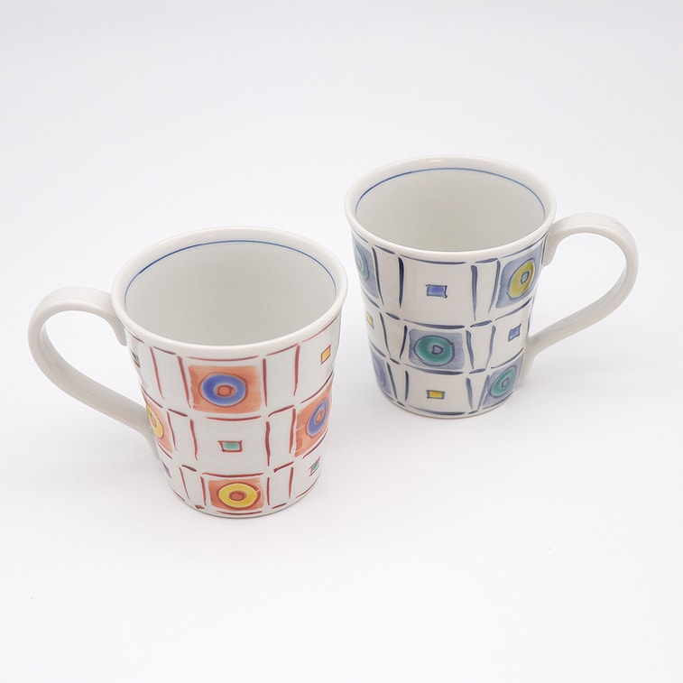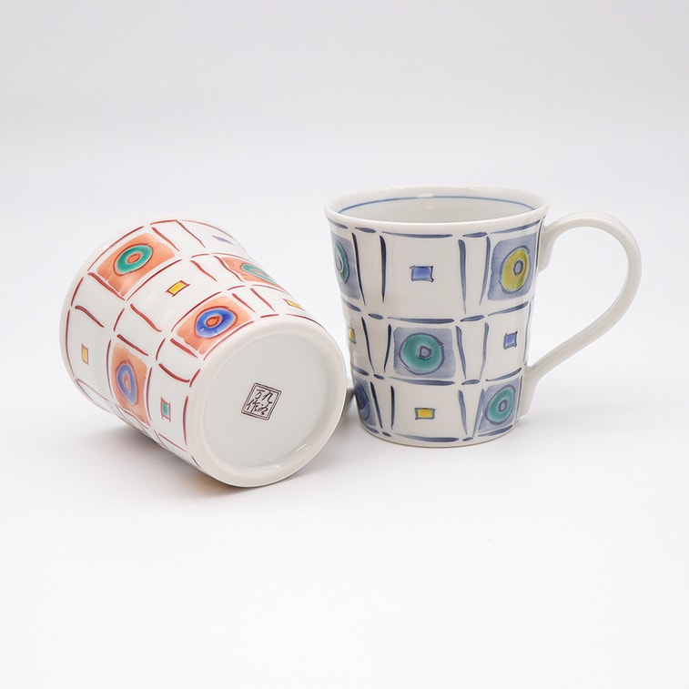 日本の九谷焼手作りマグカップ 2 個セット (タイル 3.27 x 3.35 インチ)