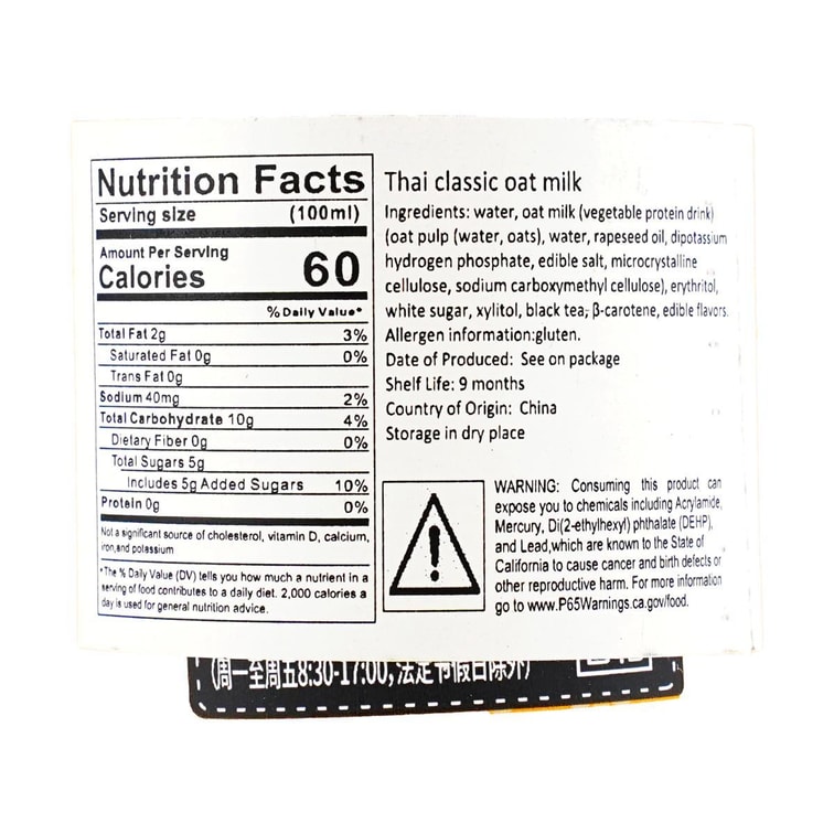 タイ クラシック オートミルクティー 10.14 液量オンス【低糖質 コレステロール 0 トランス脂肪酸 乳糖不耐症対応】