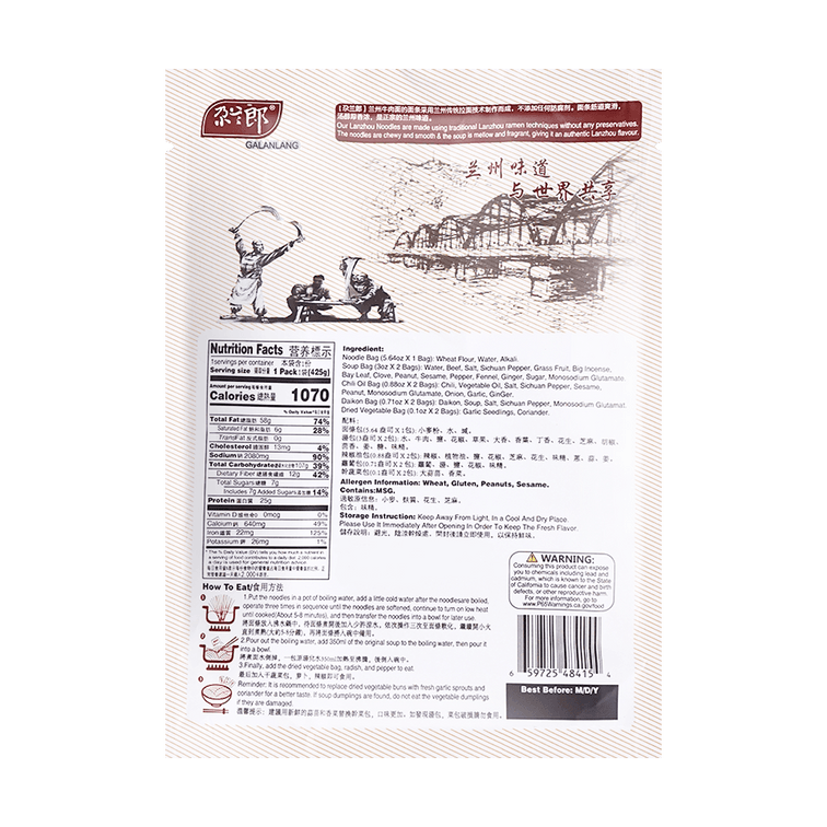 蘭州ラーメン、牛肉味麺 - 2人前、15.87オンス