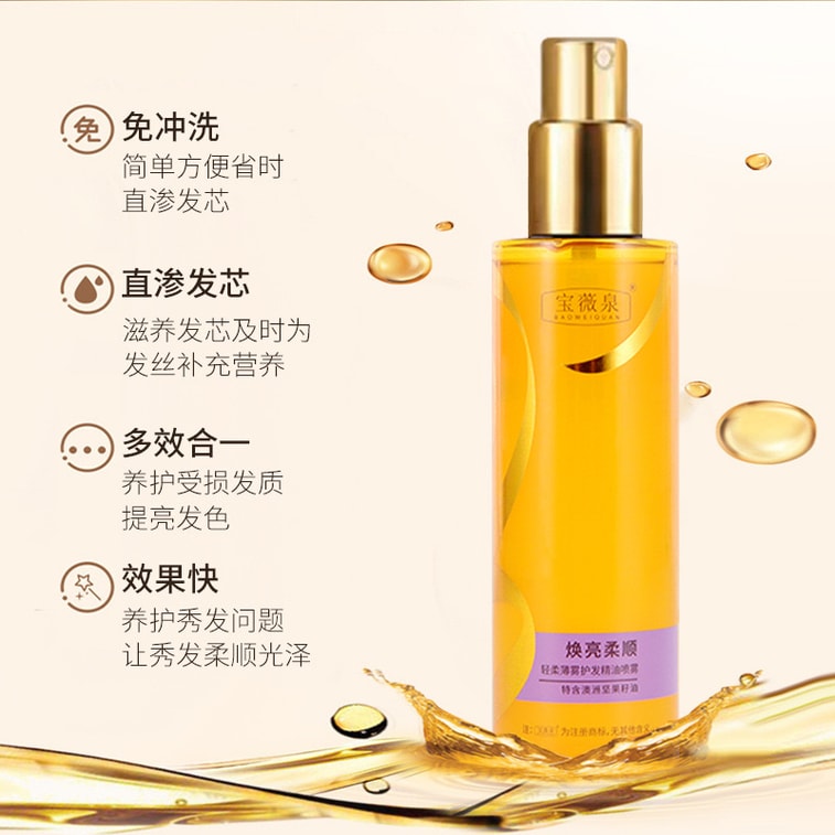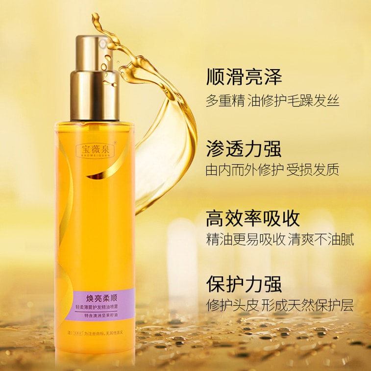 宝栄泉 洗い流さないヘアオイルスプレー - 乾燥による髪のダメージを補修し、髪質を改善し、ベタつきを防ぎます。100ml [髪の芯まで直接浸透]