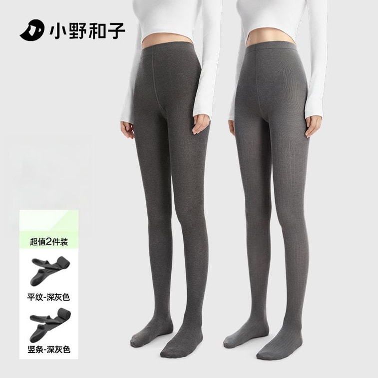 Leggings autumn new style slimming pantyhose plain weave dark gray+vertical stripe dark gray no fleece 2 pieces