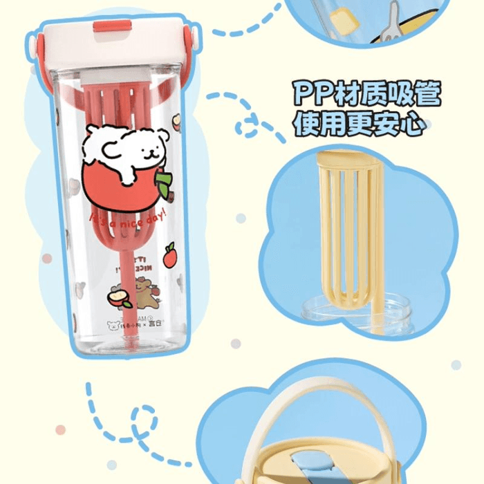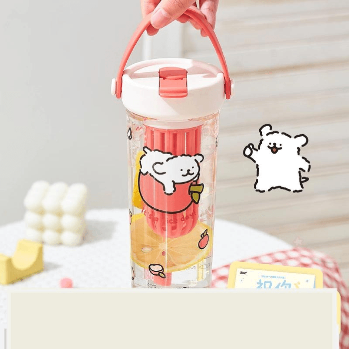 【中国直送】Yancang Line パピー プラスチック製 お茶/水分離 ポータブル 高価値 レッドアップル トラベルマグ 600ml