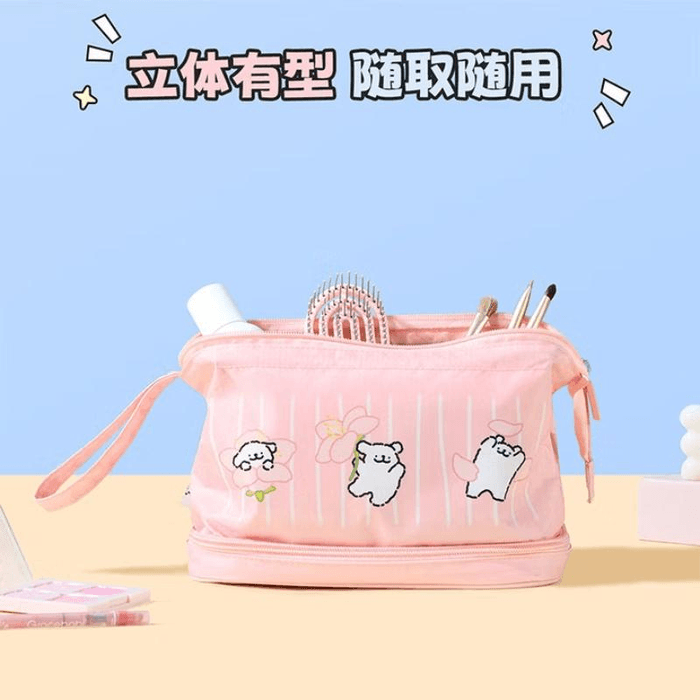 【中国からの直送】ミニソウ LINE犬コラボ ダブルレイヤーメイクアップバッグ ピンク(1個) | Yami