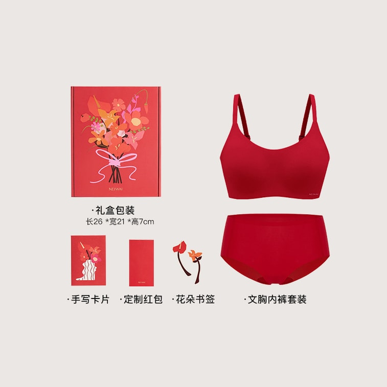 【中国直送】縁起の良い午年ギフトセット - ブラギフトボックス、キャミソールスタイル - レッド、フリーサイズ