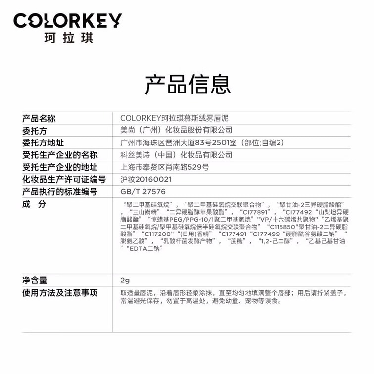 【中国直送】Colorkey リトルイースターエッグ リップ マッド ベルベット リップ グレーズ 口紅 カベルネ スモーク パウダー P103/個 美しい白い肌