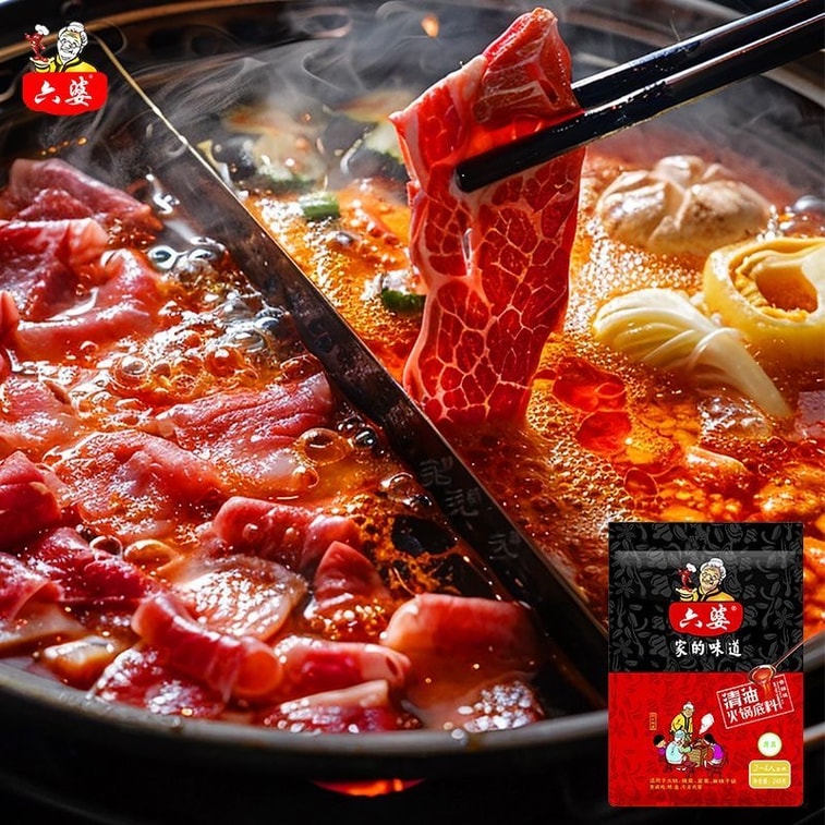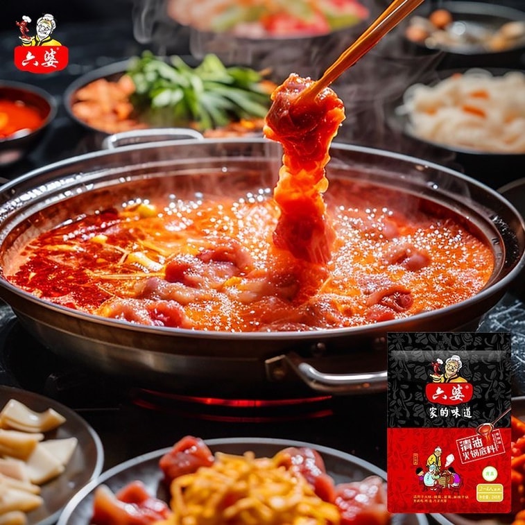 【中国直送】成都六坡激辛火鍋の素 1袋248g入り 家庭用として、麻辣湯(激辛火鍋)、四川風串焼き、毛菜(四川風火鍋)などにご使用いただけます。