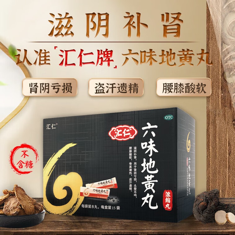 Liuwei Dihuang Pills (Concentrated). 120 pills (15 sachets). For kidney yin deficiency: relieves sore back, night sweats, tinnitus. Individually packaged for convenience.