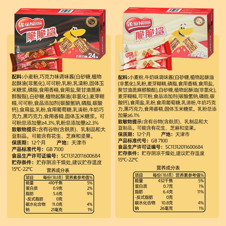 【中国直送】ネスレ クリスピーシャークウエハースビスケット 446.4g×2箱 チョコレート味24個、ミルク味24個