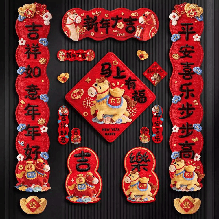 【中国直送】縁起が良くて楽しい馬年用磁気連句、5D刺繍効果、即効祝福+冷蔵庫マグネット11×68cm×1枚 | Yami