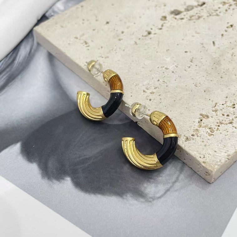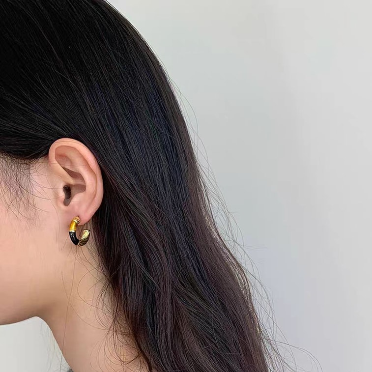 ファンシージャスミン・マイラールのブラック&レッドエナメルヴィンテージイヤリング - 秋冬のマストハブアイテム。コーディネートをワンランクアップさせ、毎日の通勤にもぴったり。見るたびに洗練された雰囲気を醸し出します。[ファンシージャスミンのプレミアム引き出し式フローティングジュエリーボックス付き] 1ペア。[彼女への新年の贈り物]