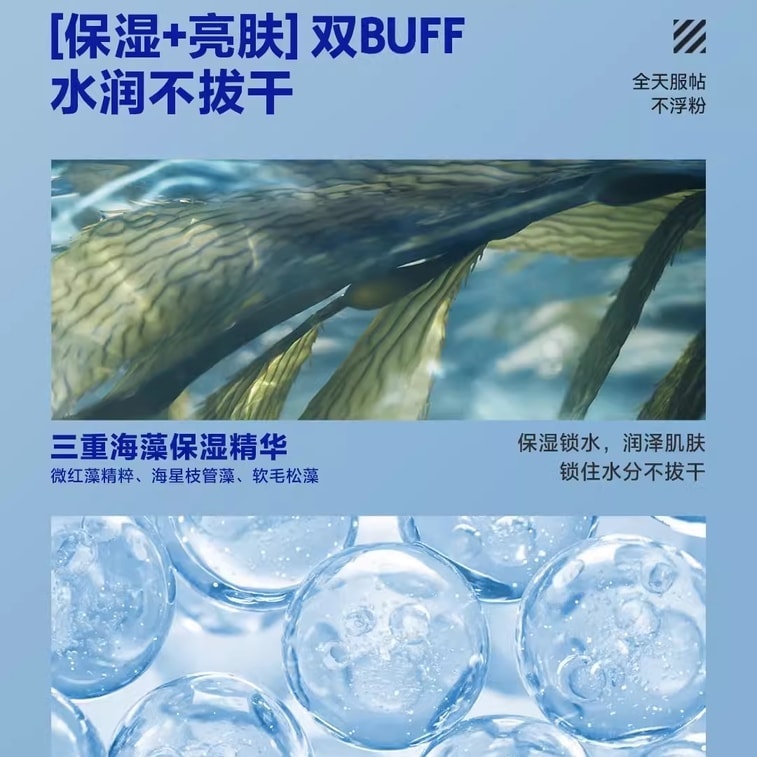 自然なカバー力、肌のトーンを明るくする、オイルコントロール付きのマット仕上げ、軽量で保湿性が高い、軽くて密着性が高く、にじみにくい。