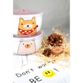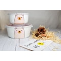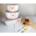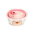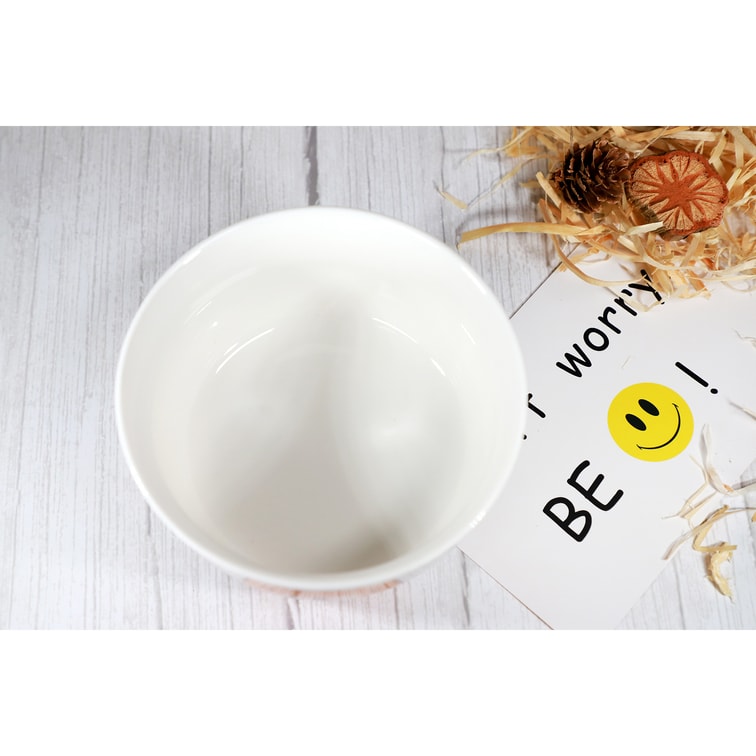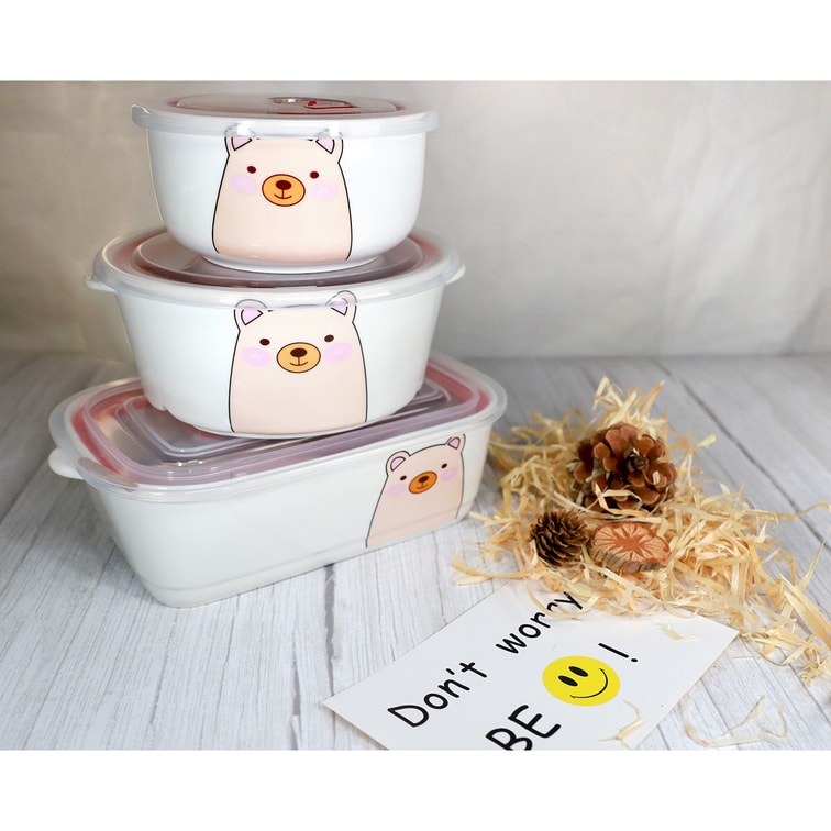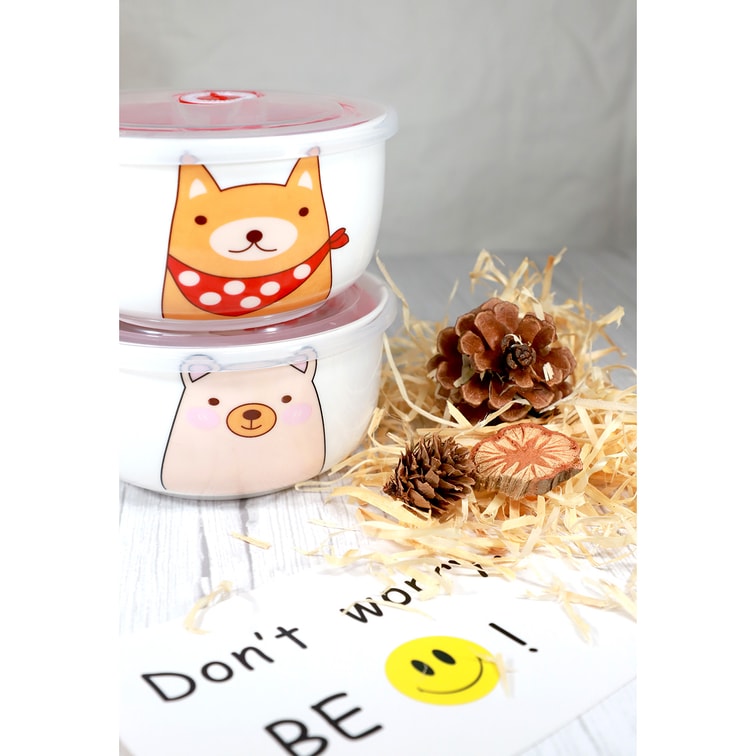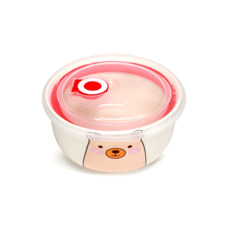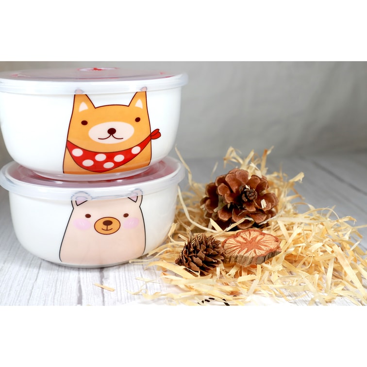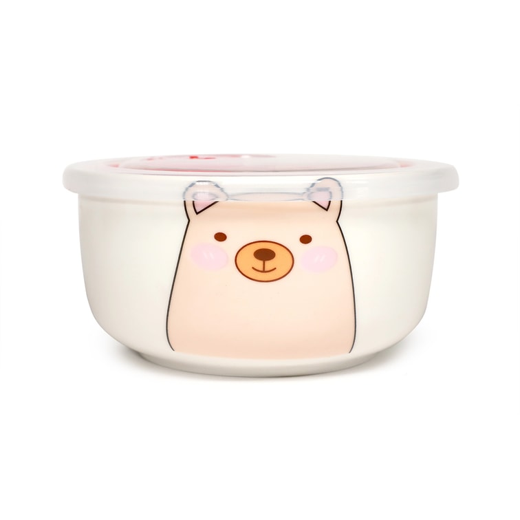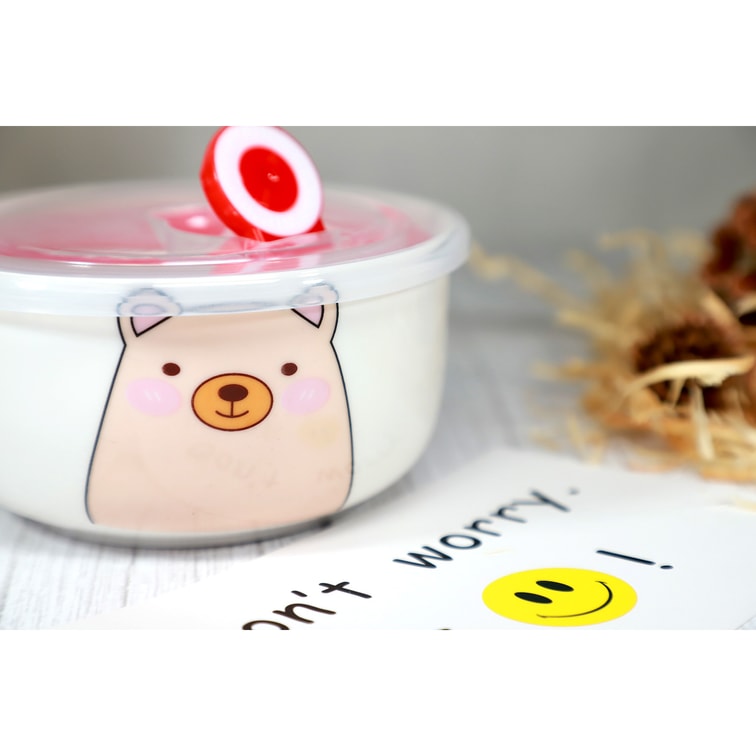 GINKGOHOME 手描きのかわいい動物、小さなセラミックの丸いセラミックランチボックス、蓋付きヌードルボウル、電子レンジ対応、絶妙なセラミック食器、ピンクのクマ 8オンス
