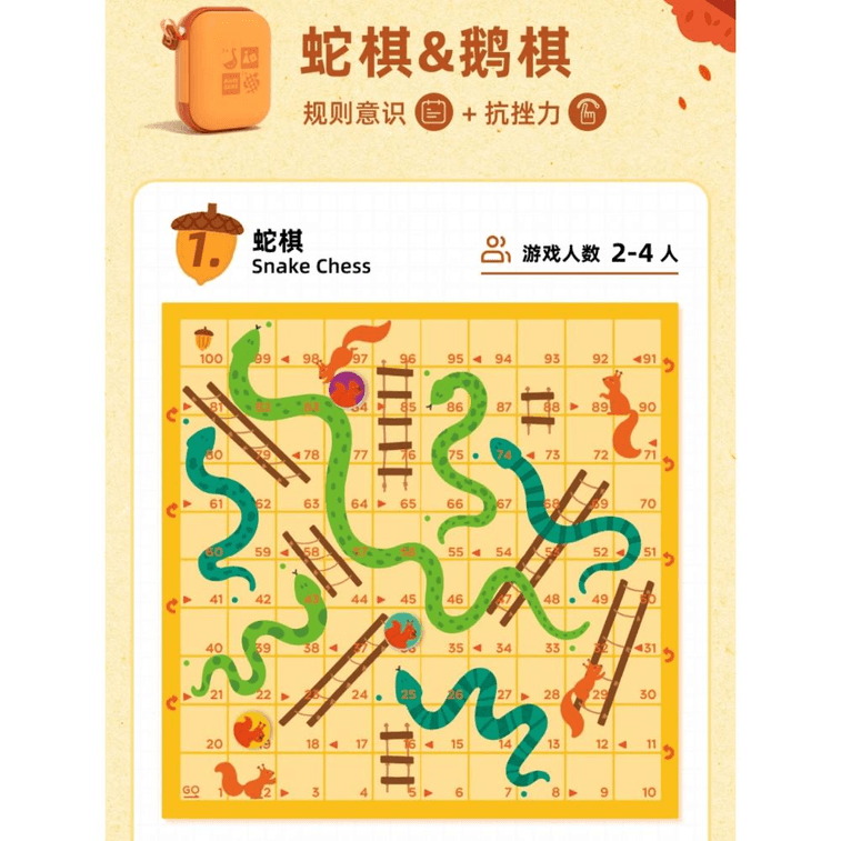 【中国からの直送】Milu 子供用論理的思考トレーニングボードゲーム ポータブル収納 2 in 1:ヘビチェス+ガチョウチェス*1個