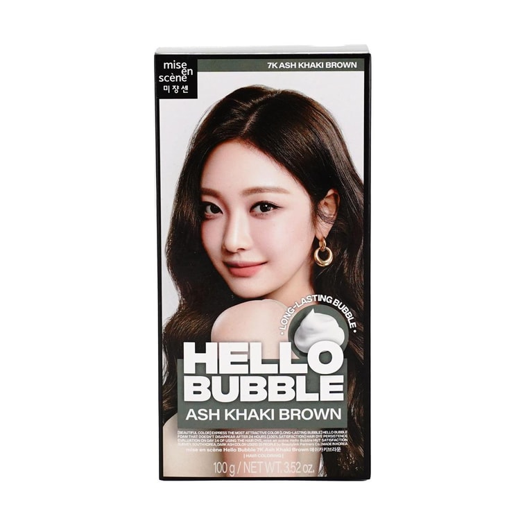 ハローバブルヘアダイ、簡単ヘアカラー、3.52オンス #7K アッシュカーキブラウン