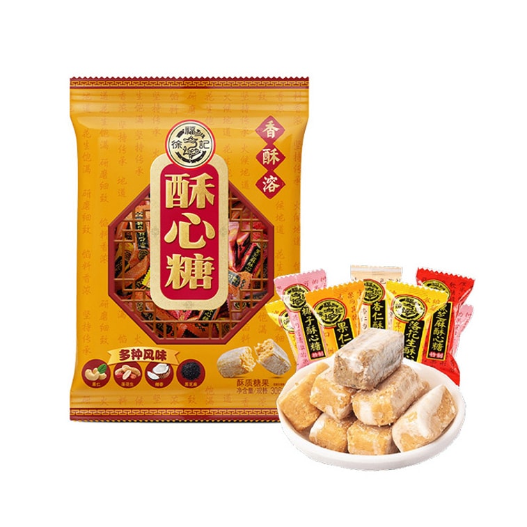 【中国直送】許福奇 ミックスフレーバークリスピーキャンディ - 黒ゴマ/ナッツ/ピーナッツ/ココナッツ味 - オフィススナック、ヘルシーなおやつ、お正月用品に最適 [クリスピーで美味しい、極薄キャンディシェル、風味豊かでクリスピー] [パッケージランダム更新、重量保証] 306g