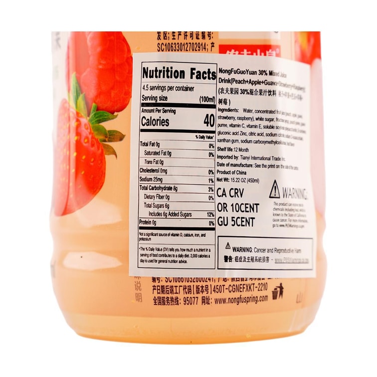 ミックスフルーツジュース飲料、ピーチ・アップル・パパイヤ・ベリー味、15.2液量オンス