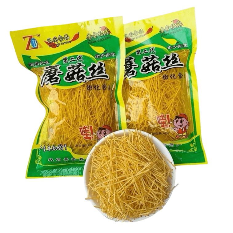 【中国直送】鍾秦慧きのこの細切りスパイシーストリップ スパイシーストリップ 8090年代の懐かしい子供時代のおやつ 50セントストアの子供時代のおやつレジャー食品 18g*2パック