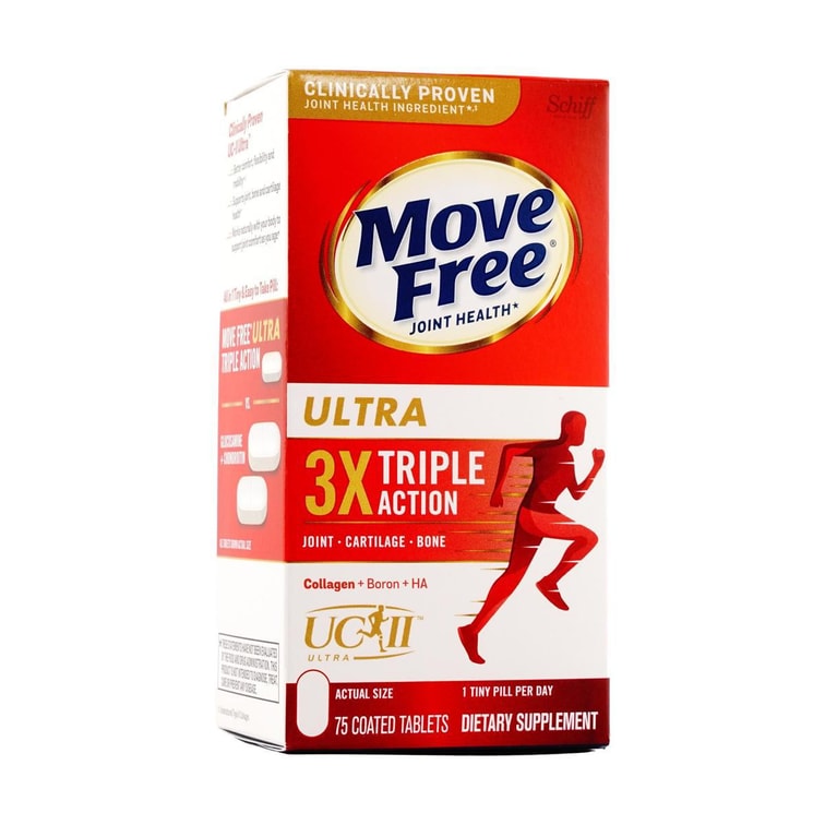 Schiff Move Free ウルトラ トリプル アクション ジョイント サプリメント、コラーゲン + ホウ素 + HA、75ct