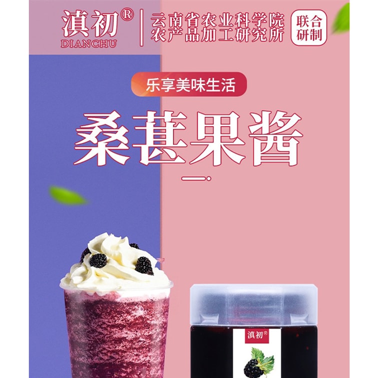 滇竹桑の実ジャム、400g。焼き菓子、トーストやフレンチトーストへの塗布、紅茶やミルクティーへの配合、ケーキのフィリング、ミルクティーの盛り付け、パンの付け合わせ、デザートソース、ケーキのデコレーションなど、様々な用途にご利用いただけます。