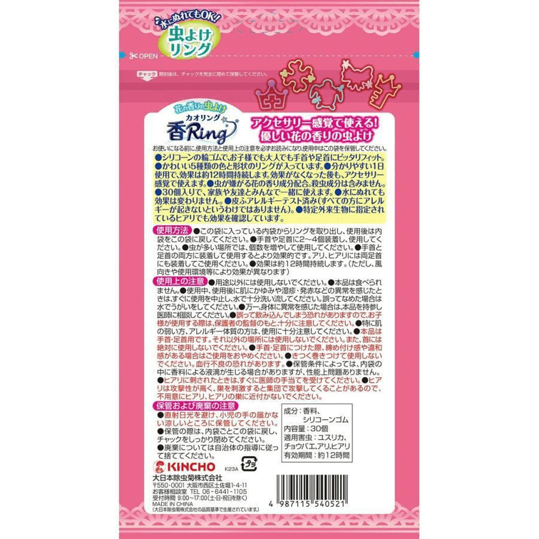 【日本からの直送】KINCHO ゴールデンバード フレグランスリング 天然成分 アウトドア用蚊よけリング 赤ちゃんから大人まで 蚊よけブレスレット 花とハーブの香り 30個