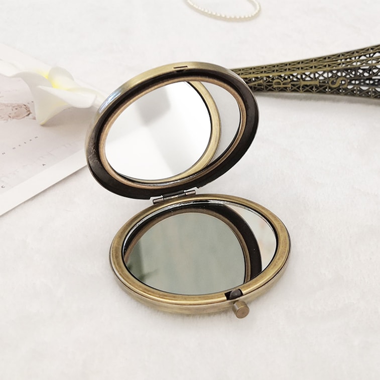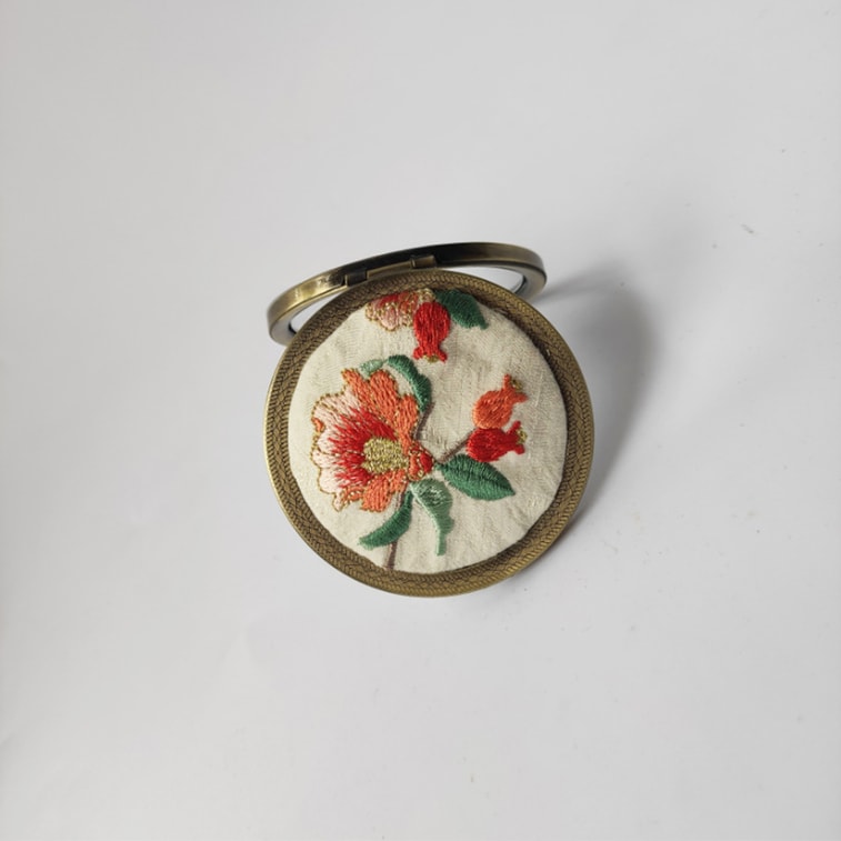 レトロな刺繍が施された折りたたみ式化粧鏡