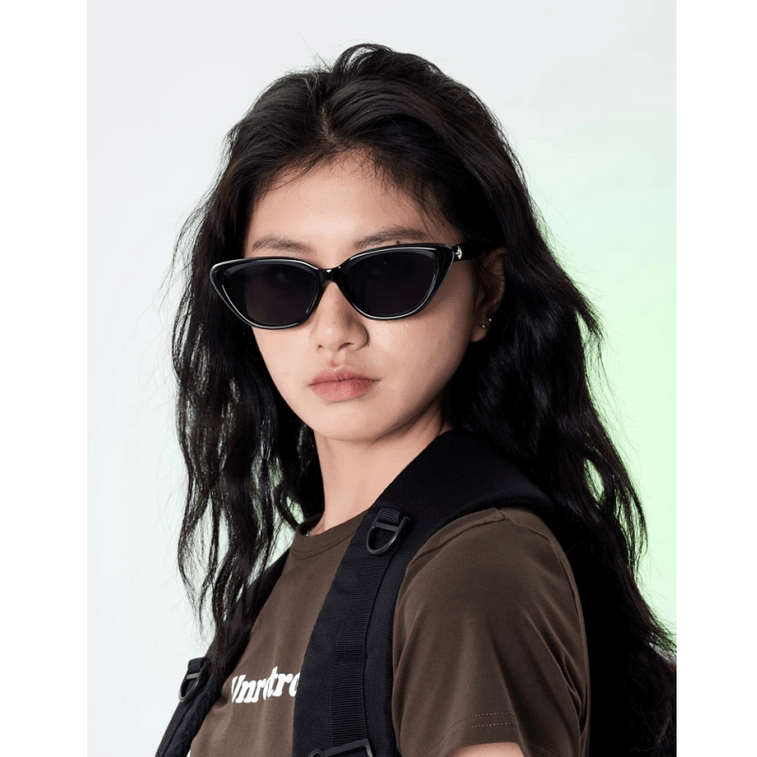 FENCH「セレブスタイル」キャットアイサングラス、UVカット偏光グラス、小さなスクエアフレームデザイン、ユニセックス、運転/旅行/ストリート写真撮影に必須