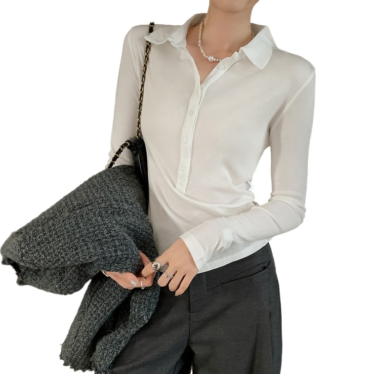 【中国直送】HSPM 新作 軽量ウール ベースレイヤートップ 襟付きニット スリムフィット 長袖トップ ピュアホワイト Mサイズ