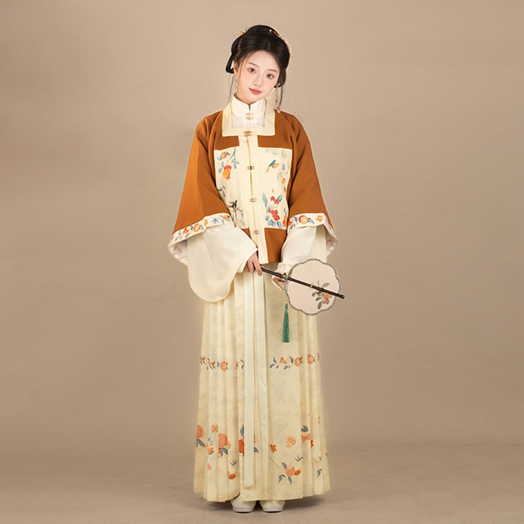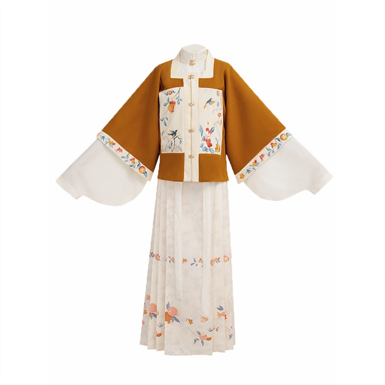 [中国直送] HSPM 新作 明代 プリント 馬面スカート スタンドカラー 刺繍 漢服スーツ (白檀ミディアム)