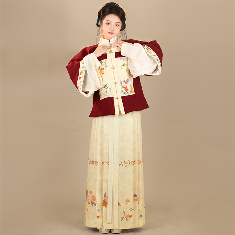 [中国直送] HSPM 新明代プリント馬面スカートスタンドカラー刺繍漢服スーツ朱占S