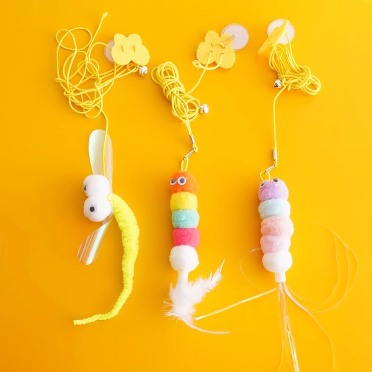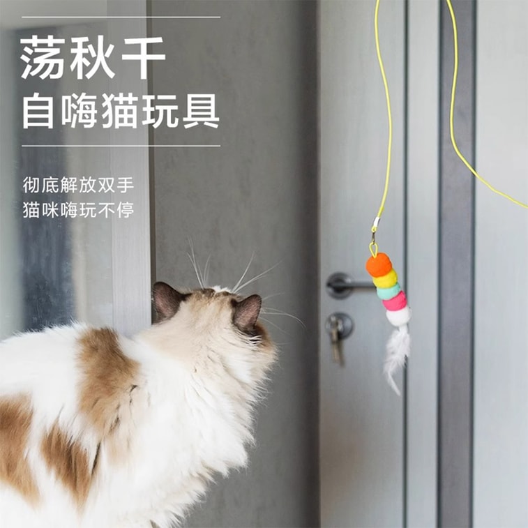【中国直送】HSPM 新型セルフエンターテイメントスイングドア掛け猫おもちゃスティック6点セット【クリッカーキャタピラー*2+羽毛キャタピラー*2+大きな目のトンボ*2】