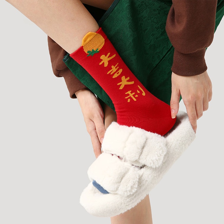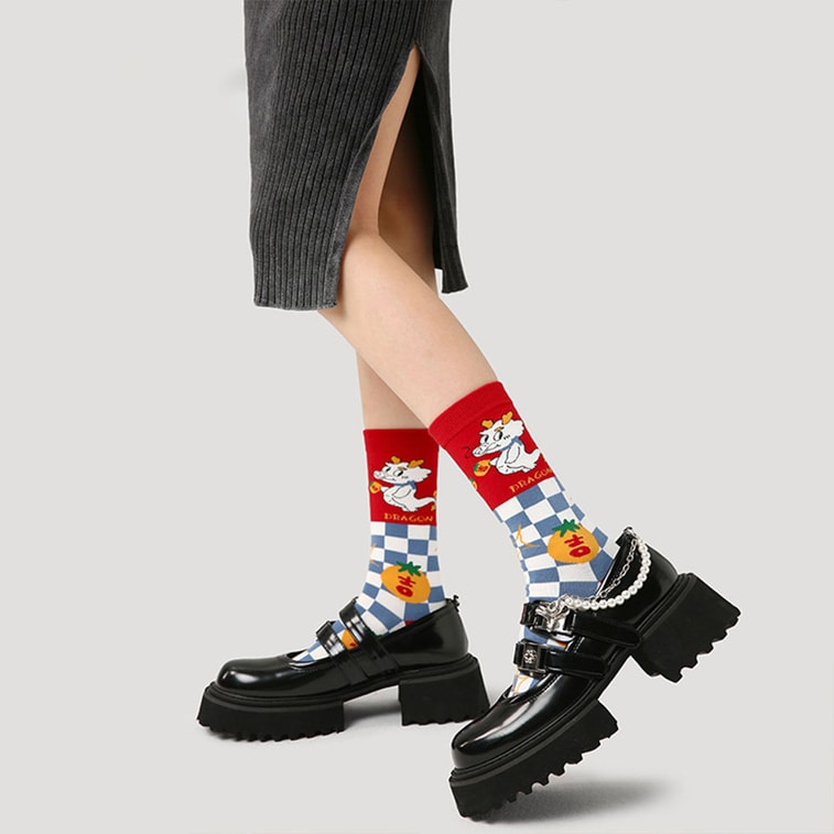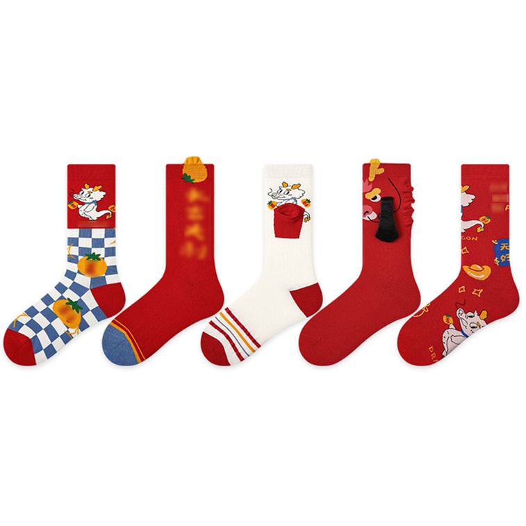 [中国から直送] HSPM 新年 レッドソックス ギフトボックス - ドラゴン年 ミドルカーフソックス、新しい冬のトレンドの赤いレディースソックス、縁起の良い新年 F ソックス (5足セット) | Yami