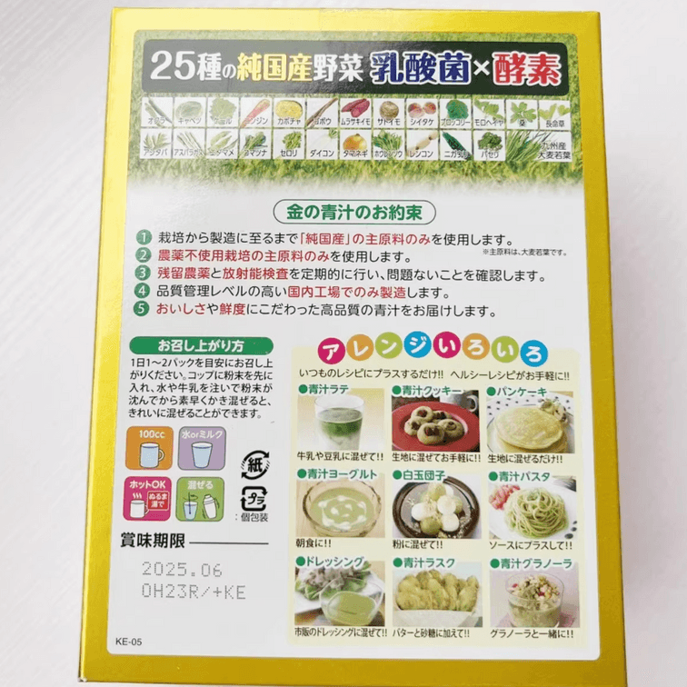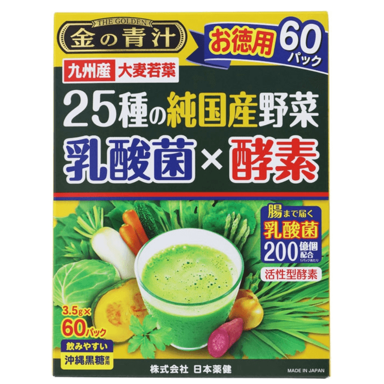 【日本直送品】和薬 乳酸菌酵素 大麦若葉青汁 25種類の野菜 食物繊維パウダー 食事代替粉末 60個