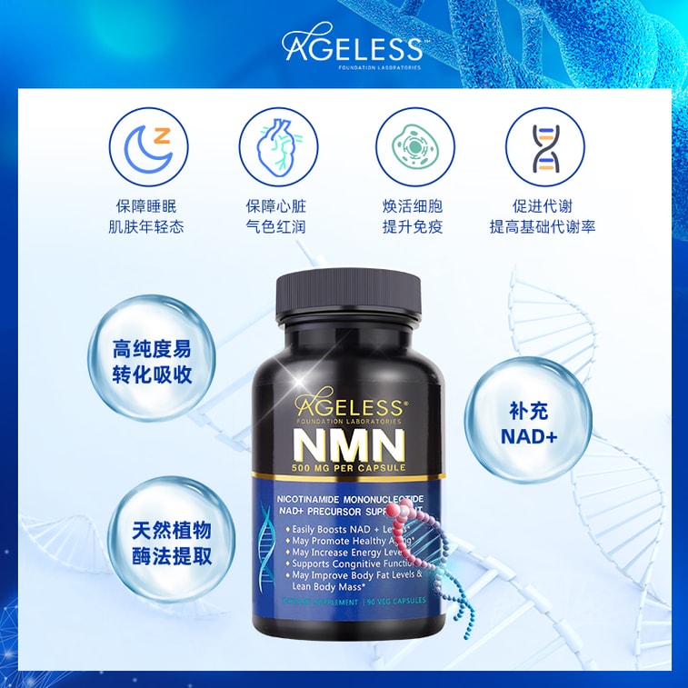 エイジレス アンチエイジング NMN ニコチンアミドモノヌクレオチド(NAD+)500mg 90錠