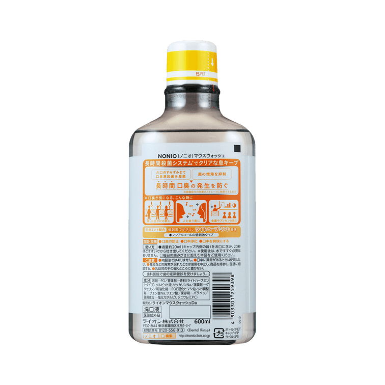 LION||NONIO ロングラスティング ディープ クレンジング ブレス フレッシュニング マウスウォッシュ||マイルド ハーバル ミント アルコールフリー 600ml