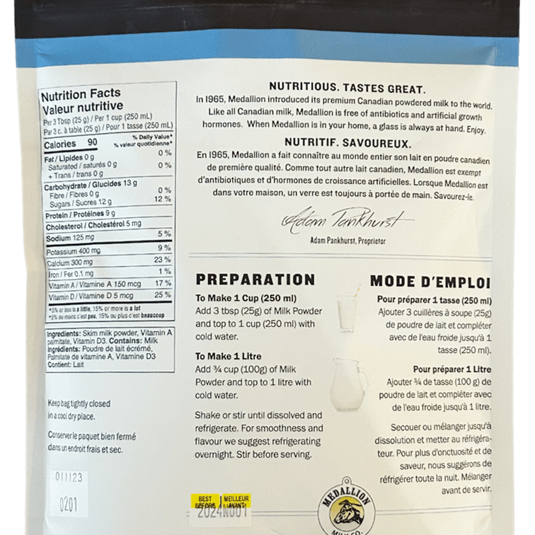 カナダ産メダリオン脱脂粉乳 500g/袋 - 4袋セット