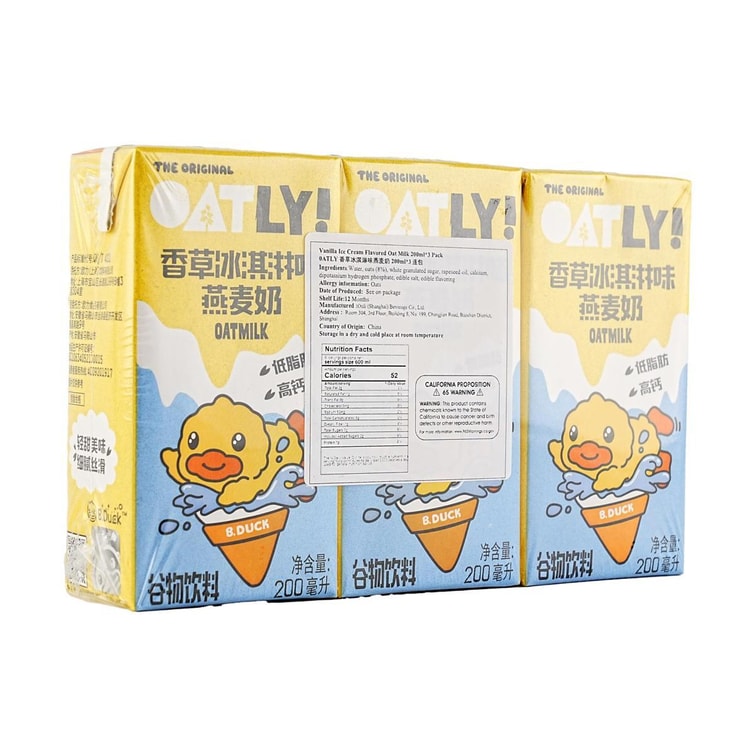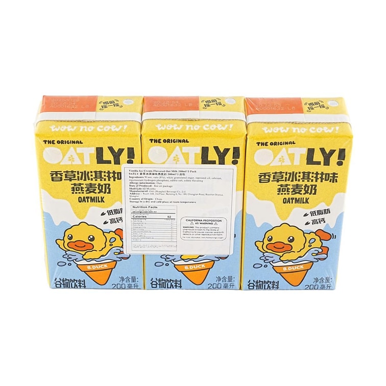 バニラアイスクリーム風味 オートミルク 6.76 fl oz*3パック【コレステロール0、トランス脂肪酸0、乳糖不耐症対応】