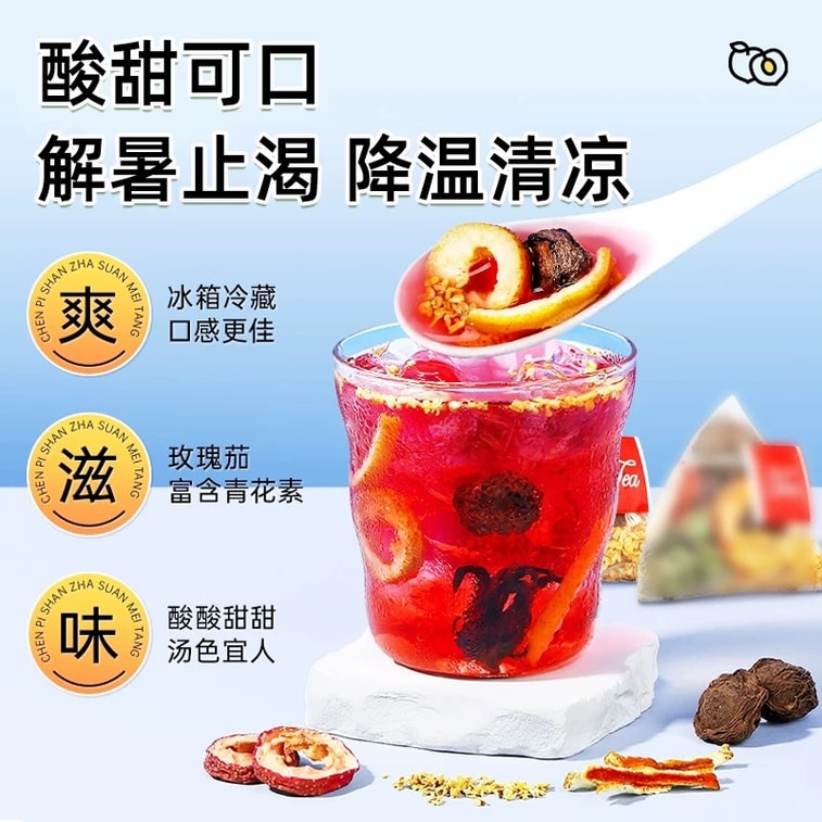 北京同仁堂酸梅ドリンク、北京の酸梅ドリンク、食欲をそそる爽やかな甘酸っぱいドリンク、温かくても冷たくても美味しく、アイスでも美味しくいただけます、爽やかで清涼感のあるキンモクセイとサンザシ茶、160g(16g*10袋)