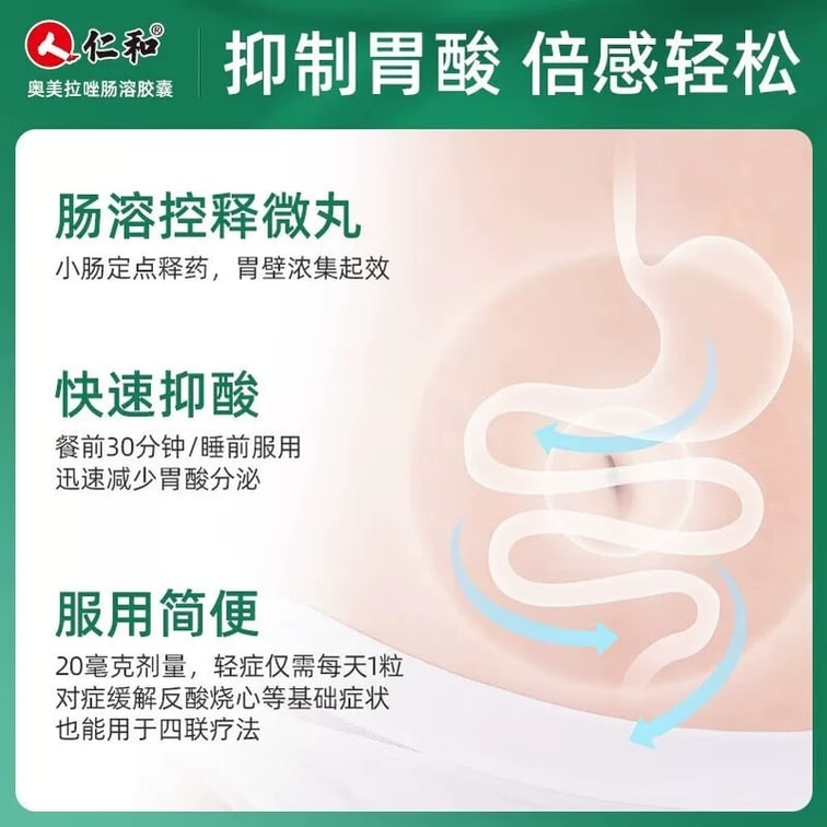 仁和オメプラゾール腸溶カプセル胃薬胃炎、胃痛、胃潰瘍腸に適応14カプセル*1瓶/箱
