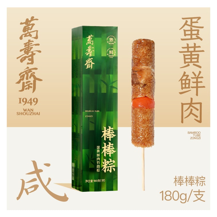 【中国からの直送】万寿寨 竹筒入りちまき(塩漬け卵黄と生肉入り)、180g x 1袋、真空パックされたすぐに食べられる朝食ちまき、竹の香りがする、柔らかくもちもちとした、懐かしい伝統的なおやつ。 | Yami