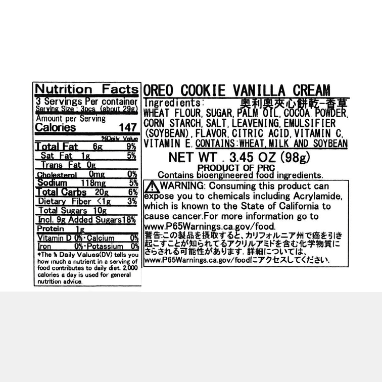 オレオクッキー、バニラクリーム、3.45オンス