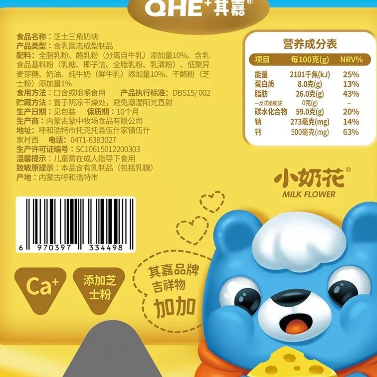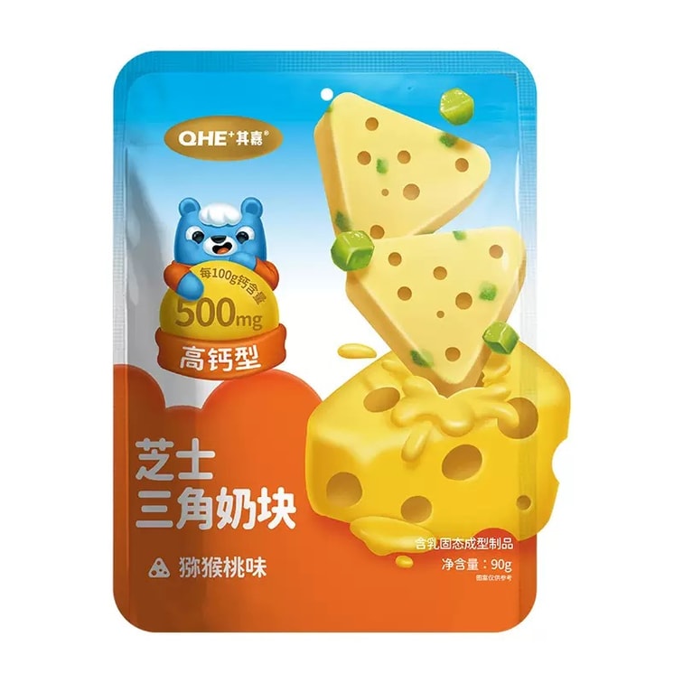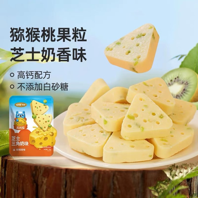 Qijia ミニミルクフラワーチーズトライアングルキューブ、濃厚チーズ風味、トライアングルチーズミルクキューブ、キウイ風味、90g