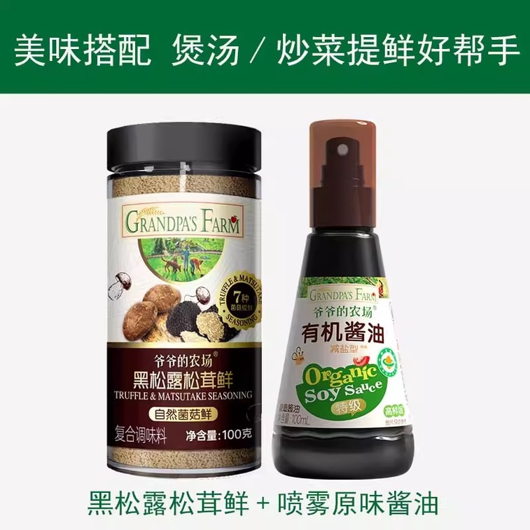 Organic soy sauce 100ml, Black truffle and shiitake mushroom fresh 100g, Spray reduced-salt children's mixed rice seasoning [2 bottle set]