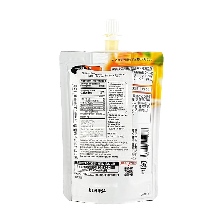 ぷるんと蒟蒻ゼリー オレンジ風味 4.59オンス【脂肪0・低カロリー】