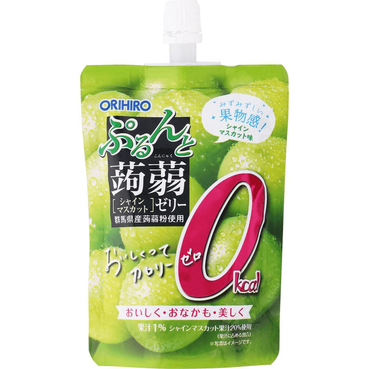弾力のあるこんにゃくゼリー、ゼロカロリー、光沢のあるマスカット風味