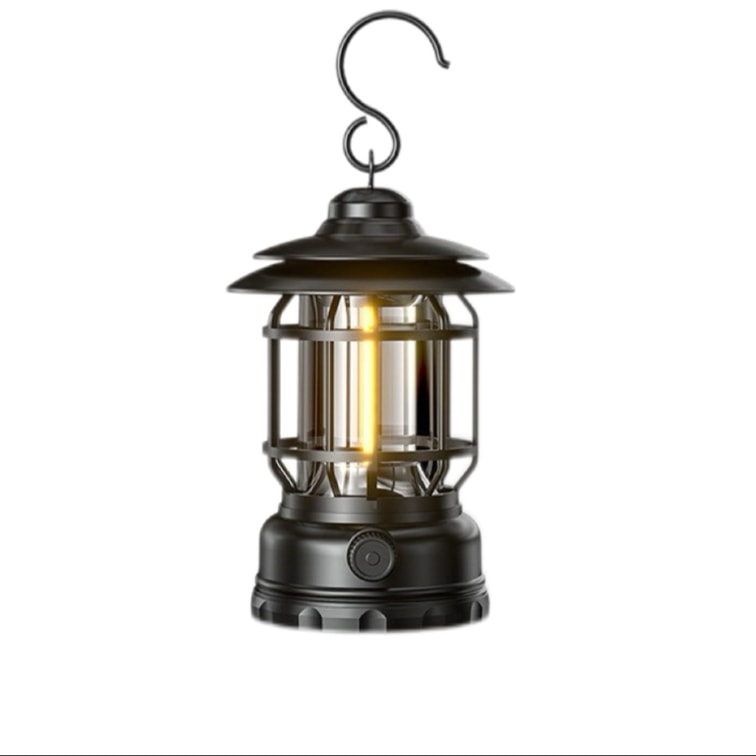 [中国直送] アウトドア キャンプ ライト ポータブル 多機能 LED キャンプ ライト テント ライト Type-C 充電式 レトロ ホース ランタン - ブラック (1個)